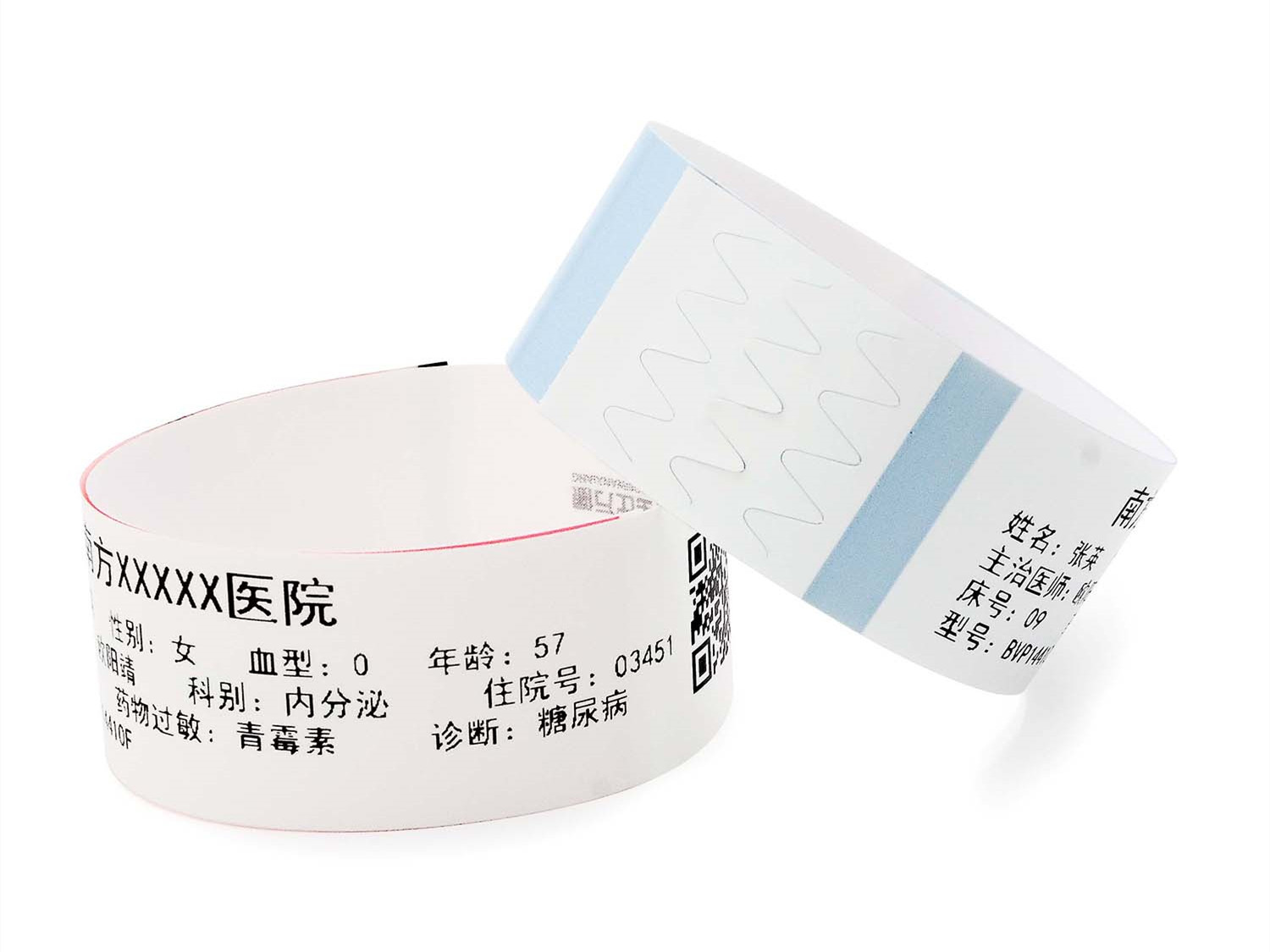 热敏条码识别腕带的使用减少纸张等材料的消耗。此外,通过自动化管理病人信息,医院可以节省大量的人力和时间成本。在医疗过程中,医护人员可以随时查看病人的历史记录、用药情况等信息,为病人提供更全面、个性化的医疗服务。