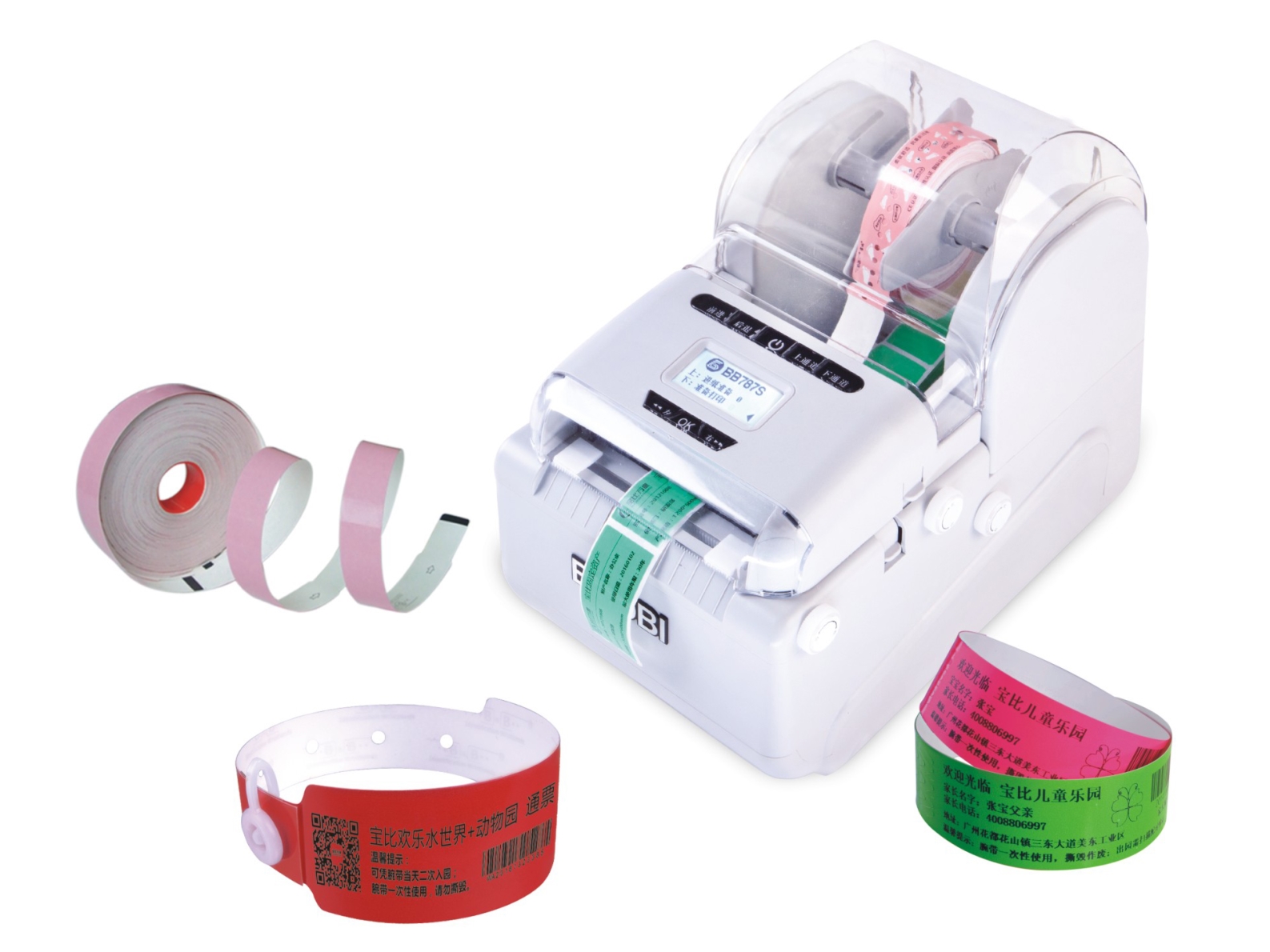 在游乐场的应用中,通过腕带打印机打印出携带二维码的一次性识别手腕带,佩戴于游客手腕上。目前主流的二维码手腕带采用纳米硅材质,柔软耐撕,热敏打印快速清晰。二维码由智能门票云系统后台生成,包含了门票规则。