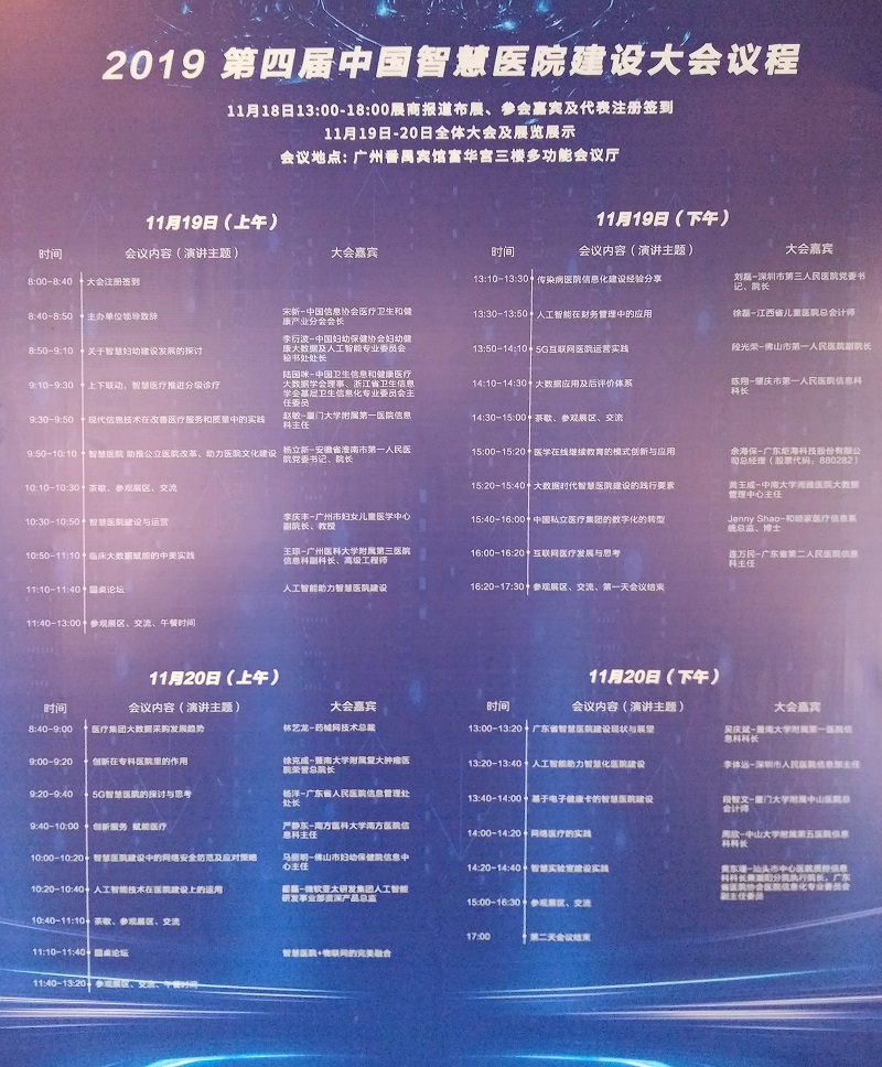 11月19日,2019第四届中国智慧医院建设大会在广州番禺宾馆盛大举办。此次大会将围绕“变革与创新,智慧赋能健康”的主题,邀请行业主管领导、行业专家、业界优秀企业代表等,展开主题演讲、深度分享和探讨。