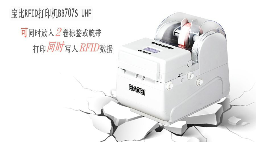 作为广州市宝比万像科技有限公司的核心技术产品,宝比RFID打印机BB707S UHF一直以其高精度、高效率、易操作、用途广、灵活性高等性能优势受到了市场的青睐。RFID标签打印机BB707S UHF具有热敏打印和热转印两种打印模式可选,在耗材选择方面更加灵活,一机多用能有效节约设备成本。具有三种设置模式可选,可在打印同时实现RFID写入,也可以仅进行打印或RFID写入,满足不同应用场景的RFID打印需要。RFID标签打印机BB707S UHF可以在宽度108mm以内的腕带和标签上,实现分辨率高达300dpi的高精度一维码、二维码和文本信息打印。独创的双组双通道专利设计,可放置双卷热转印大卷标签、双卷热敏大卷标签或同时放置热转印大卷标签和热敏大卷标签,通过按键即可快速切换打印通道,轻松转换打印介质。RFID标签打印机BB707S UHF标配有多语言标签打印软件,支持不同语言文本的打印,同时支持EPC Global UHF Class 1 Gen 2/ISO 18000-6C协议,充分体现其泛用性和灵活性。